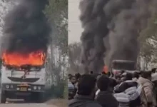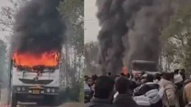 डंपर की टक्कर से बाइक सवार की मौत, गुस्साई भीड़ ने डंपर फूंका