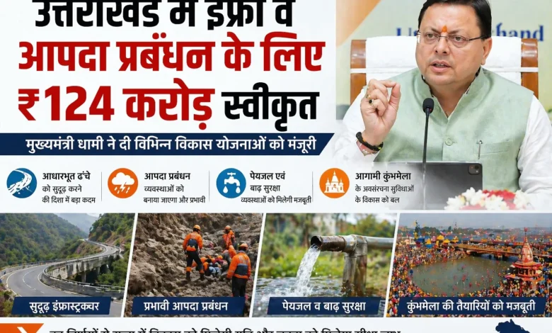 मुख्यमंत्री पुष्कर सिंह धामी ने विभिन्न विकास योजनाओं के लिए ₹ 124 करोड़ का अनुमोदन प्रदान किया है। इन निर्णयों से राज्य में आधारभूत ढांचे को सुदृढ़ करने, आपदा प्रबंधन को प्रभावी बनाने तथा पेयजल एवं बाढ़ सुरक्षा से संबंधित व्यवस्थाओं को सशक्त करने के साथ ही आगामी कुम्भमेला के अवस्थापना सुविधाओ के विकास में मदद मिलेगी।