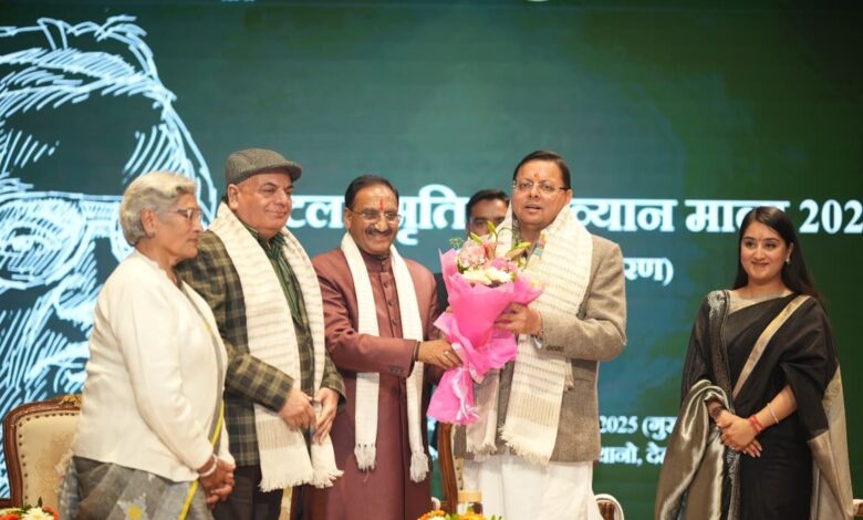 देहरादून। मुख्यमंत्री पुष्कर सिंह धामी ने गुरुवार को लेखक गॉव थानो, देहरादून में भारत रत्न अटल बिहारी वाजपेयी की जयन्ती के अवसर पर आयोजित अटल स्मृति व्याख्यान माला-2025 कार्यक्रम में प्रतिभाग किया। इस अवसर पर मुख्यमंत्री ने अटल प्रेक्षाग्रह का भी लोकार्पण किया।