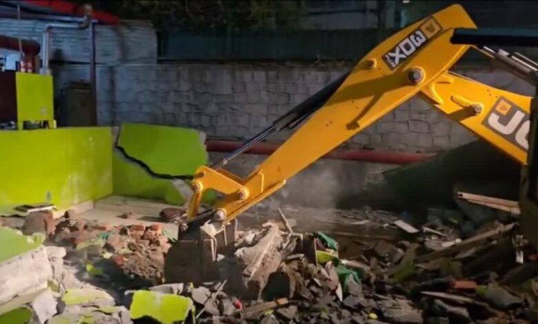 गौर हो कि उत्तराखंड में फिर बुलडोजर एक्शन तेज हो गया है. बीती रात नगर प्रशासन, एमडीडीए, नगर निगम की टीम ने घंटाघर के पास एचएनबी कॉम्प्लेक्स में बने अवैध मजार को बुलडोजर से ध्वस्त करते हुए उसका मलबा, टीन शेड को हटा दिया गया है. कार्रवाई के दौरान मौके पर भारी पुलिस फोर्स तैनात रही. नगर मजिस्ट्र प्रत्यूष सिंह, एसडीएम हरिगिरि, पुलिस अधीक्षक नगर प्रमोद कुमार समेत अन्य अधिकारी मौके पर मौजूद रहे.