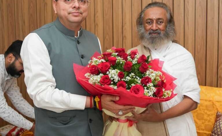 ऋषिकेश में सीएम धामी की श्री श्री रविशंकर से मुलाकात, आध्यात्मिक विकास पर हुई खास चर्चा