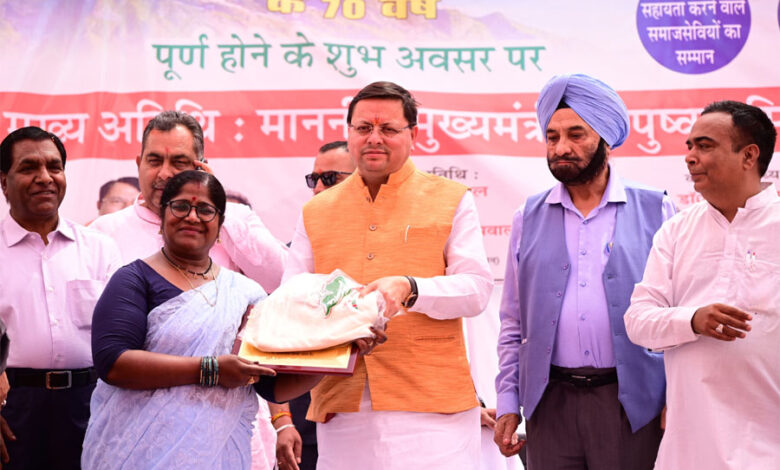 देहरादून। मुख्यमंत्री पुष्कर सिंह धामी ने मंगलवार को देहरादून के सहसपुर स्थित श्री गुरु राम राय इंटर कॉलेज के 70 वर्ष पूर्ण होने पर आयोजित कार्यक्रम में भाग लिया। इस अवसर पर उन्होंने कई वरिष्ठजनों को सम्मानित किया और स्कूली बच्चों को बैग वितरित किए। मुख्यमंत्री ने सभी को शुभकामनाएं देते हुए कहा कि आजादी के ठीक बाद स्थापित इस विद्यालय ने क्षेत्र में शिक्षा की अलख जगाई है। उन्होंने विद्यालय के प्रधानाचार्य डॉ. रविंद्र कुमार सैनी की 35 वर्षों की सेवा की सराहना करते हुए कहा कि उनके पढ़ाए छात्र देशभर में विभिन्न क्षेत्रों में सफलता प्राप्त कर रहे हैं।
