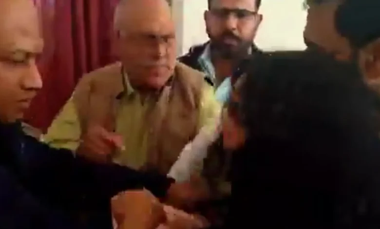 वीडियो बना रहे पत्रकार व निदेशक के बीच छीना झपटी