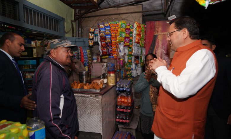 देहरादून। दिल्ली दौरे से लौटे मुख्यमंत्री पुष्कर सिंह धामी ने मंगलवार को यमुना कॉलोनी चौक में काफिला रुकवाकर पुराने परिचित दुकानदारों एंव आम जन से मुलाकात कर उनका कुशलक्षेम जाना। अपनी पुरानी यादों को ताजा करते हुए मुख्यमंत्री दुकानों में खरीदारी करने पहुंचे।