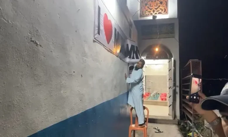 हल्द्वानी :लालकुआं में यहां मस्जिद से हटवाया आई LOVE मोहम्मद का पोस्टर