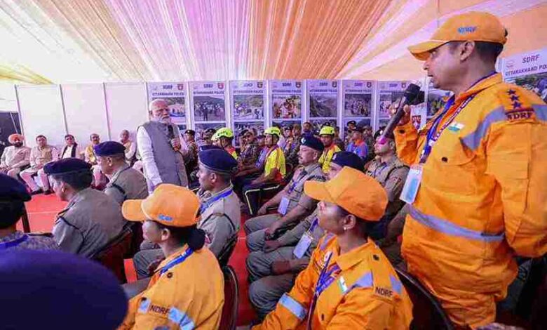 उत्तराखंड में प्राकृतिक आपदा से हुए नुकसान का जायजा लेने पहुंचे प्रधानमंत्री श्री नरेंद्र मोदी ने गुरुवार को जौलीग्रांट एअरपोर्ट पर आपदा राहत कार्यों की गहन समीक्षा की। प्रधानमंत्री ने इस दौरान अलग-अलग क्षेत्रों में आपदा से हुए नुकसान का विस्तार से जानकारी लेने के साथ ही राहत एवं बचाव कार्यों की ताजा स्थिति और भविष्य की चुनौतियों पर राज्यपाल ले.ज. गुरमीत सिंह (से.नि.), मुख्यमंत्री श्री पुष्कर सिंह धामी, केन्द्रीय राज्य मंत्री अजय टम्टा तथा राज्य के सांसदों सहित वरिष्ठ अधिकारियों के साथ विचार-विमर्श किया। प्रधानमंत्री श्री नरेंद्र मोदी ने धराली, थराली सहित राज्य के आपदा प्रभावित अन्य क्षेत्रों में संचालित राहत एवं बचाव अभियानों में एनडीआरएफ, एसडीआरएफ सहित राज्य सरकार के विभिन्न विभागों के प्रयासों की सराहना की और राहत बचाव कार्यों में जुटे राज्य व केन्द्र सरकार के संगठनों के कार्मिकों से भेंट कर उनके अनुभव साझा किए। प्रधानमंत्री ने आपदा पीड़ितों से भी मुलाकात कर उनका ढांढस बंधाने के साथ ही समुचित मदद का भरोसा दिलाया।