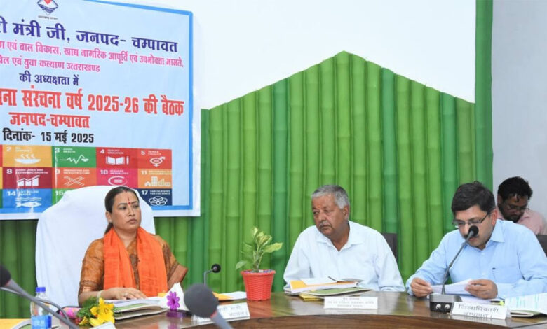 देहरादून। आज उत्तराखंड राज्य की कैबिनेट मंत्री श्रीमती रेखा आर्या ने बनबसा, चंपावत में चंपावत जनपद की 2025-26 जिला कार्य योजना की बैठक ली। बैठक में जनपद चंपावत के लिए 6857.10 लाख रुपए के बजट को अंतिम रूप दिया गया। बैठक में जिला योजना के तहत विभिन्न विभागों के विकास कार्यों के लिए आवंटित बजट पर अधिकारियों को निर्देशित किया। बैठक में कैबिनेट मंत्री श्रीमती रेखा आर्या ने कहा कि जिला योजना के तहत जनता की जरूरत के आधार पर कार्यों की प्राथमिकता तय की जाए और जिला योजना के सभी कार्य इसी वित्तीय वर्ष में पूरे होने चाहिए। कैबिनेट मंत्री श्रीमती रेखा आर्या ने कहा कि सभी विभागीय अधिकारी यह सुनिश्चित करें कि विकास कार्य तेज गति से और अच्छी गुणवत्ता के साथ हो। बैठक में लोहाघाट विधायक खुशाल सिंह अधिकारी, जिलाधिकारी नवनीत पांडे, सीडीओ संजय कुमार,चंपावत विधायक प्रतिनिधि प्रकाश तिवारी जी, चंपावत नगर पालिका परिषद अध्यक्ष श्रीमती प्रेमा पांडे, दीपक रजवार, डीएफओ नवीन पंत सहित अन्य विभागीय अधिकारीगण मौजूद रहे।